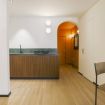 The entrance welcomes guests into a spacious and bright living area, furnished with a comfortable corner sofa, a latest-generation smart TV and an armchair dedicated to book lovers. The harmoniously integrated dining area leads to a custom-made corner kitchen, equipped with cutting-edge appliances, designed to satisfy the most refined culinary needs.