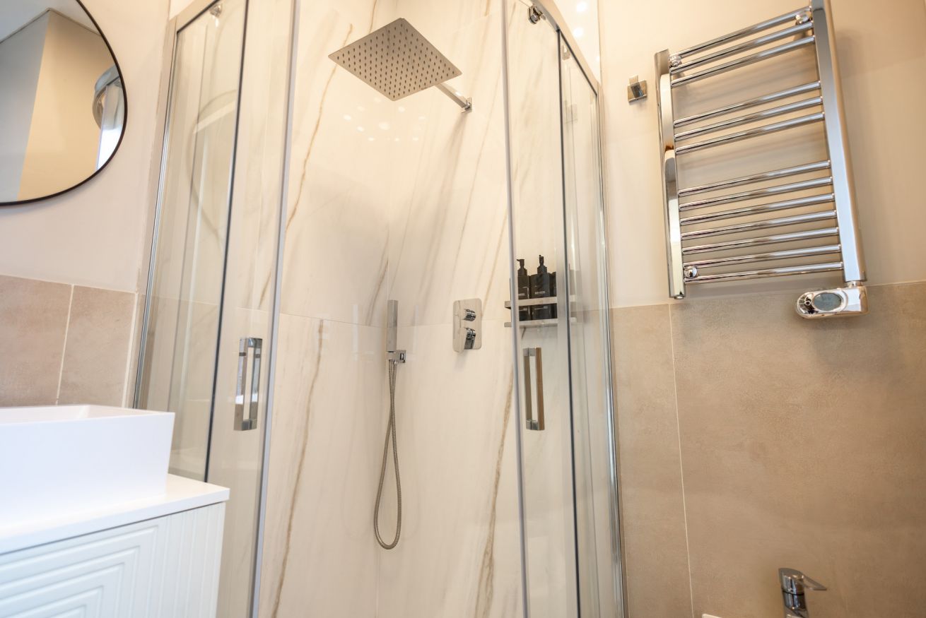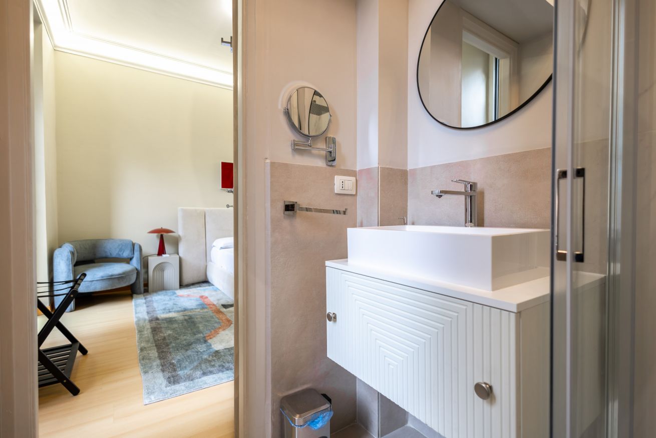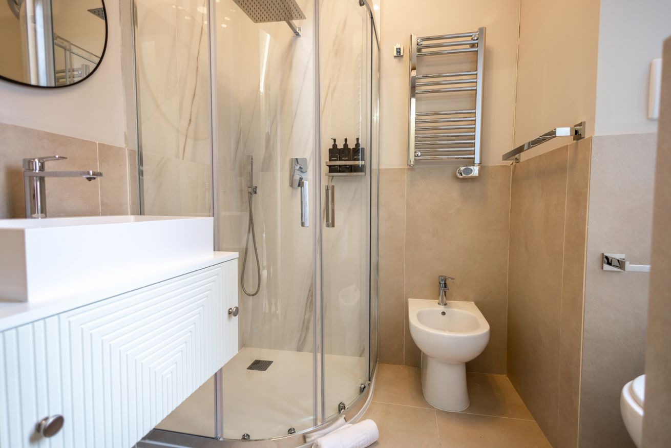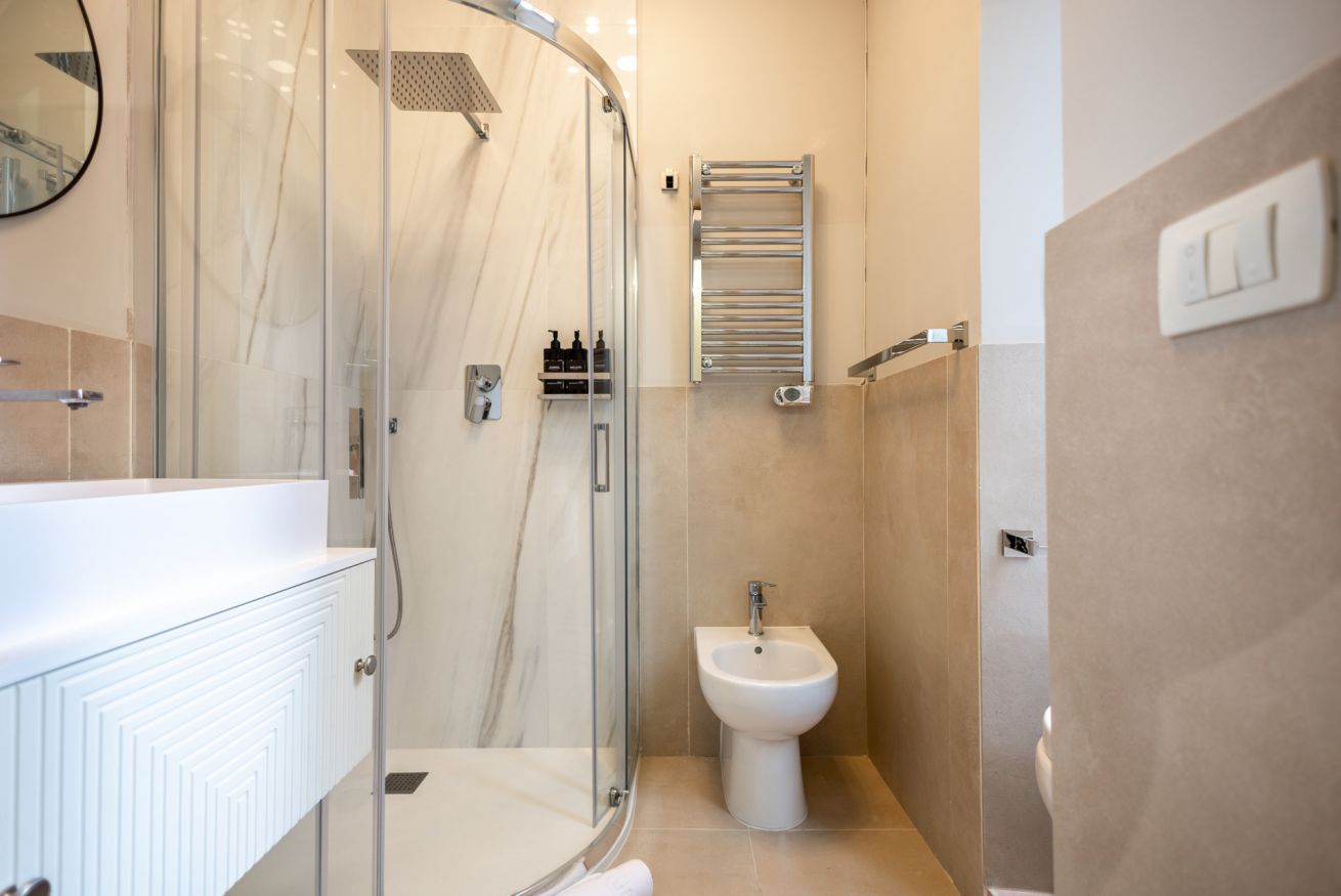 Il bagno, moderno e curato, propone un’elegante doccia con finiture contemporanee, pensata per offrire comfort e benessere quotidiano. L’intero appartamento è caratterizzato da parquet caldo, palette cromatiche equilibrate e un perfetto bilanciamento tra funzionalità e stile, creando un ambiente accogliente, ricercato e perfettamente in linea con un’abitazione urbana di qualità.
