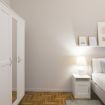 La spaziosa camera matrimoniale è un’oasi di comfort, arricchita da una smart TV a muro e da una poltrona trasformabile in un comodo letto singolo, ideale per ospiti o momenti di relax.