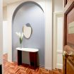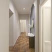 L'ingresso, finemente progettato, accoglie con ampie pareti a specchio e pratici armadi a muro, offrendo una sensazione di ampiezza e luminosità. Il caldo parquet a vista, presente in tutti gli ambienti, dona un tocco di classe e armonia all’intera abitazione.