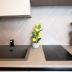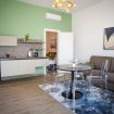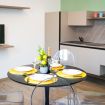 All'ingresso, vi accoglie una luminosa zona living dotata di un comodo divano letto e Smart TV, perfettamente integrata con la zona pranzo. L'adiacente angolo cottura è completamente attrezzato con elettrodomestici moderni, offrendo tutto il necessario per preparare i vostri pasti.